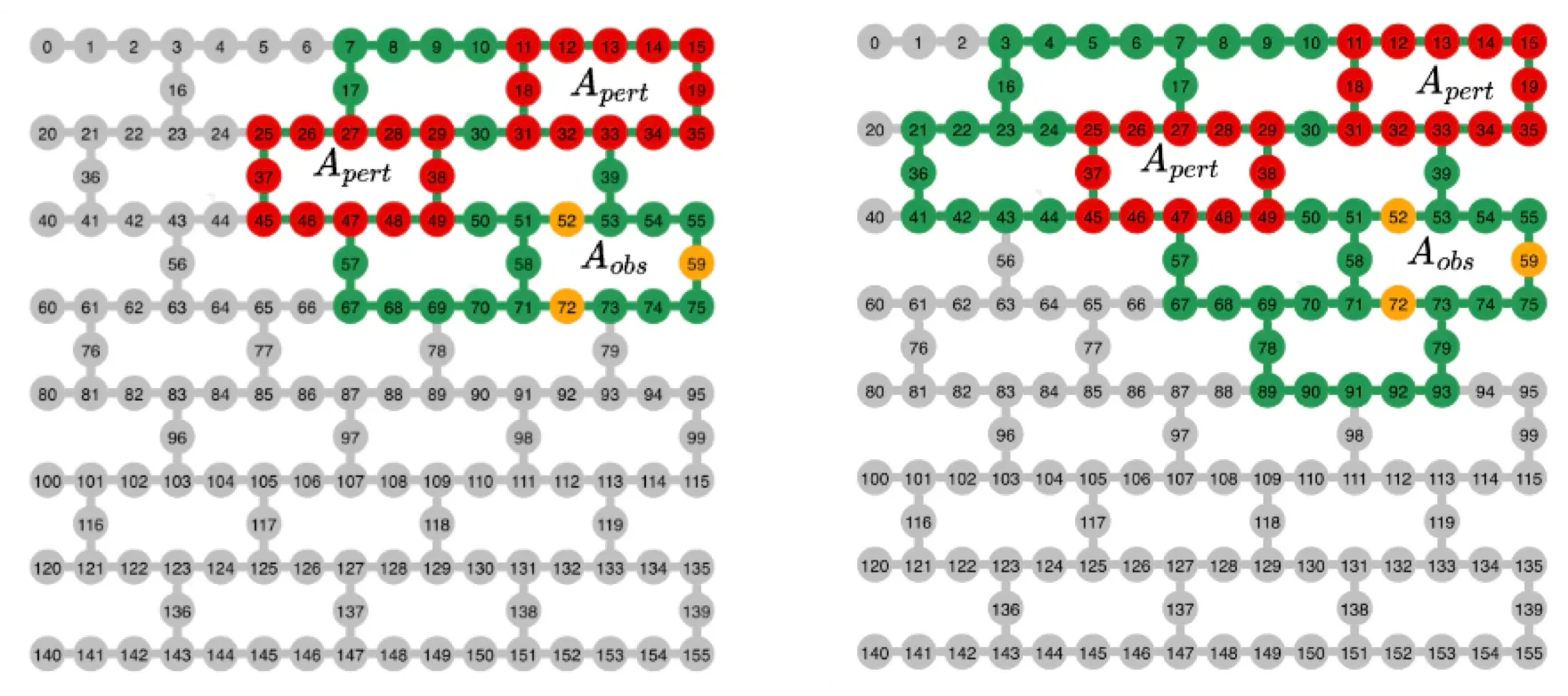 Heavy-hex topologies probed in the IBM’s experiment: (a) 49 qubits, (b) 70 qubits.